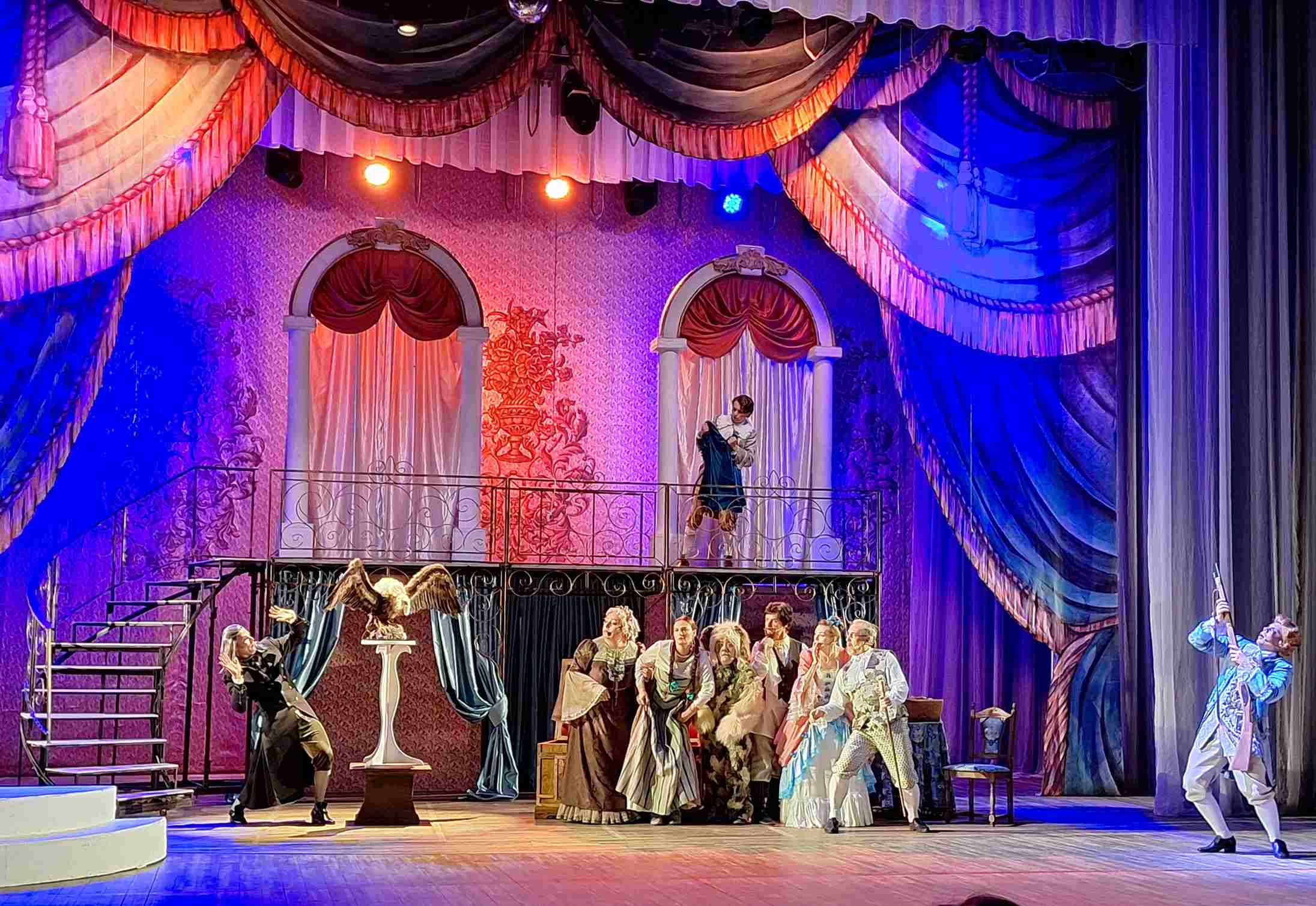 Действие бывает откровенно романтичным, любопытным, иногда эксцентричным и не всегда, увы, галантным. Проходит в исторической обстановке, которую воссоздано в многофактурных декорациях и красочных костюмах, разработанных и изготовленных под руководством художника-постановщика Гетты Петкевич. А эффектная хореография балетмейстера, заслуженного деятеля искусств РК Александра Гоцуленко и сопровождение симфонического оркестра под управлением дирижёра Андрея Сидоренко придают ему динамизма и эмоциональности с оттенками лёгкого флёра и юмора.