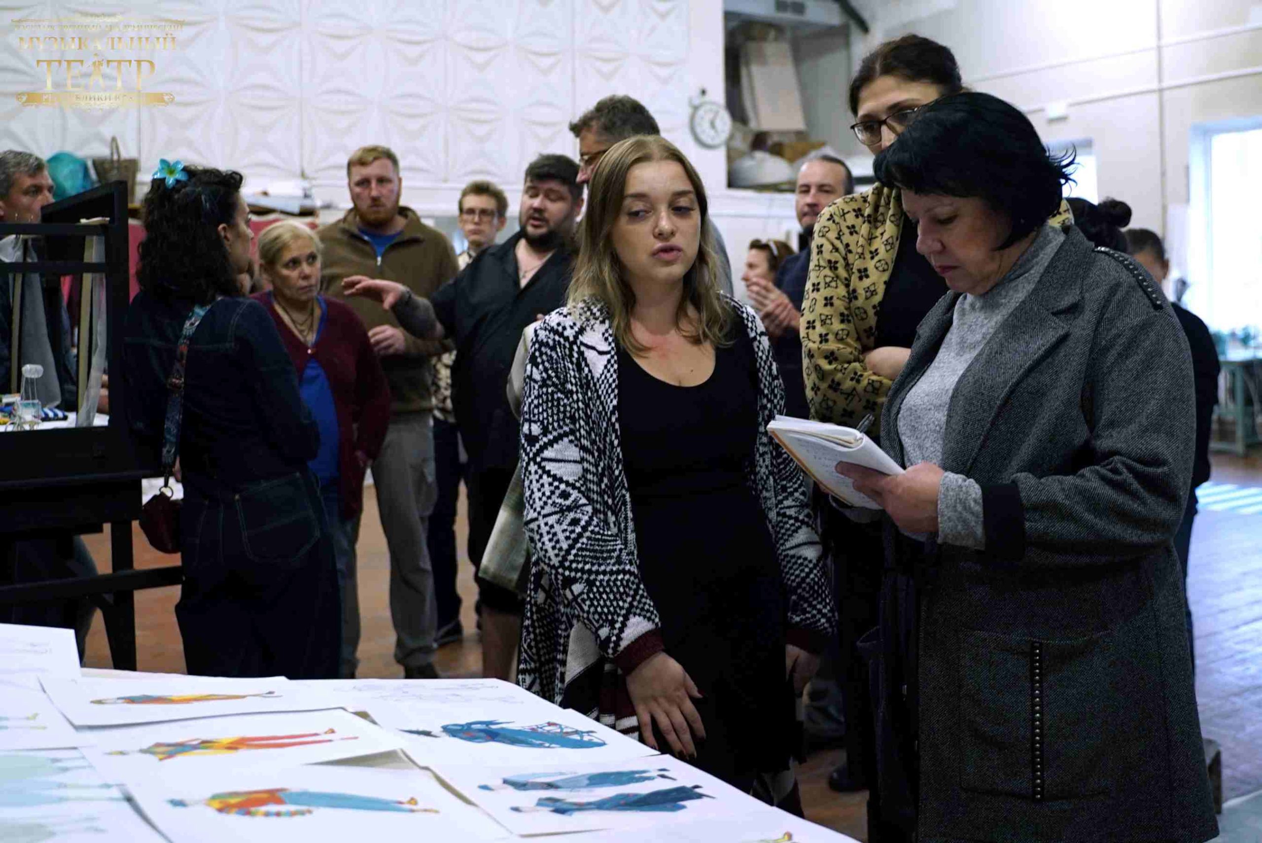 А на следующий день состоялся технический совет, где своё видение сценографии представителям производственных цехов и постановочной группы представила Лариса Махтеева. Она приоткрыла завесу, что многие сцены спектакля будут решены через цирковые подвесные лестницы, а кочующий домик музыкантов превратится в цирковую арену. О костюмах рассказала молодой художник Лейла Кючук. По задумке режиссёра они разбиты на три группы. В самых светлых тонах представлены жители Бремена – Король, Принцесса и его свита. Яркая цветовая гамма досталась бродячим артистам, которые, приехав в город, окрашивают его в сочные живые краски. Разбойники и Атаманша будут щеголять в костюмах темных оттенков.