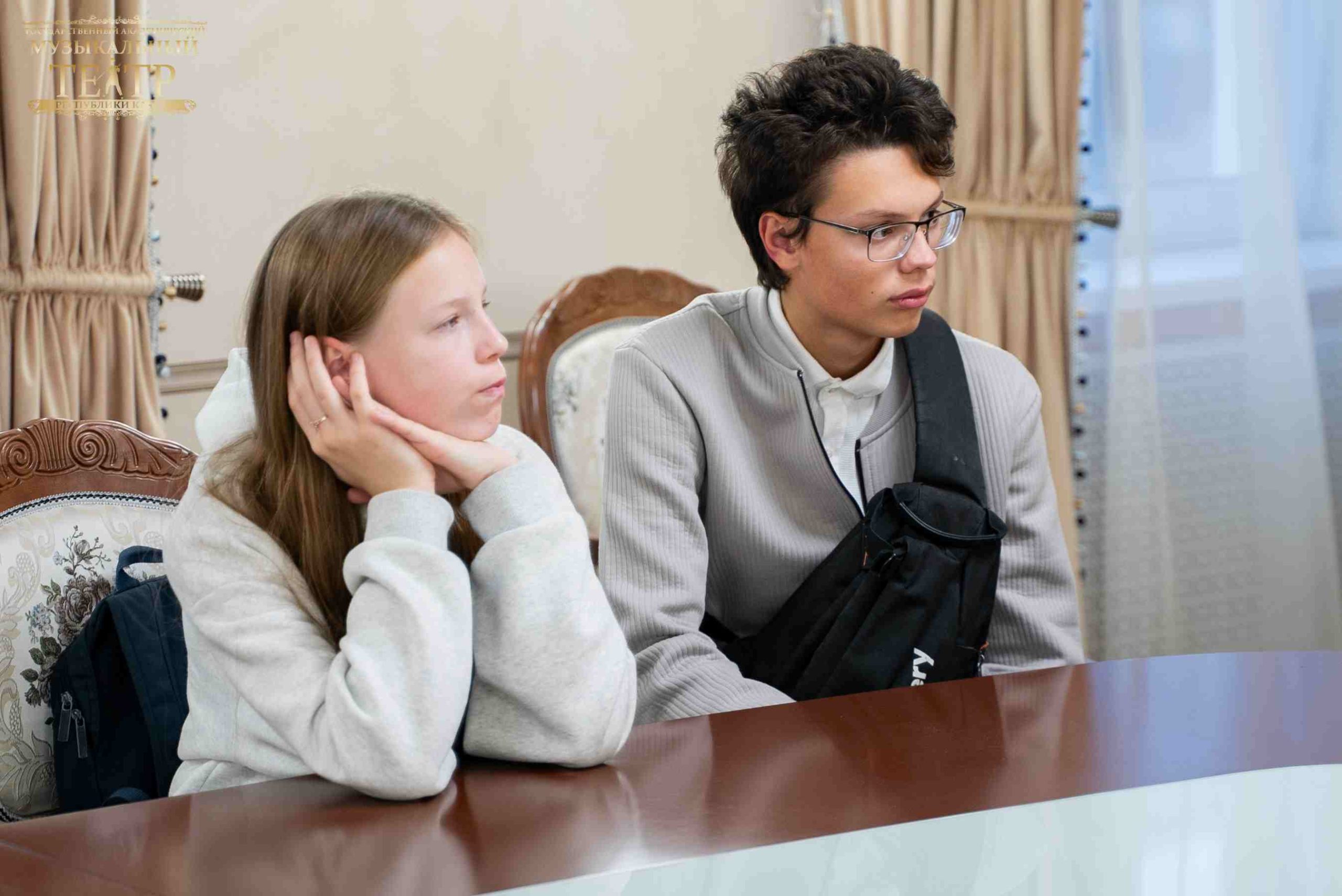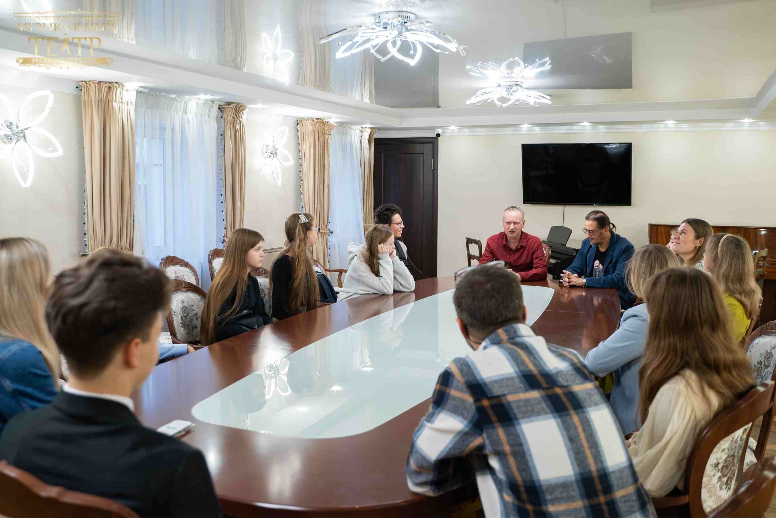 За час до начала спектакля с ребятами встретился главный режиссер театра заслуженный деятель искусств Республики Крым Владимир Косов. Беседа называлась «Театр изнутри: диалог с режиссером». Владимир Анатольевич рассказал о своем пути в профессию: что его привело в театр, о своих первых учителях и самых важных уроках.