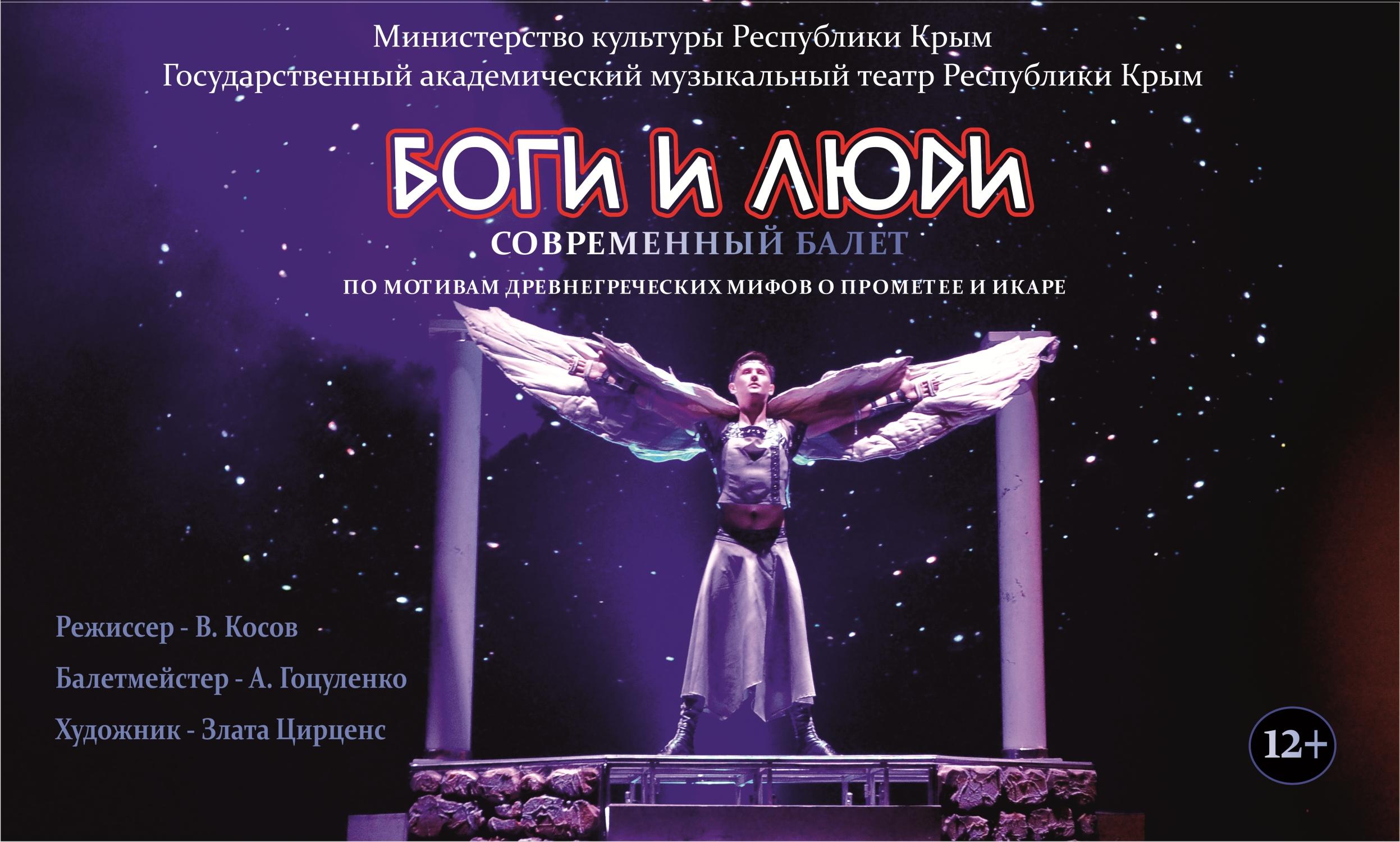Балет «Боги и люди» появился в репертуаре театра в Перекрестный год России и Греции. Изначально была поставлена пластическая мистерия «Икар». Она была показана на Международном фестивале античного искусства «Боспорские агоны» и завоевала Гран-При фестиваля. Затем стала Лауреатом фестиваля «Земля. Театр. Дети», который проходил в Центре «Золотой ключик» в Евпатории. Это и натолкнуло режиссера и автора Владимира Косова на продолжение работы. Легенду об отважном Икаре дополнил еще один известный миф — о Прометее. Так родился спектакль «Боги и люди». Артисты балета, солисты, артисты хора превращаются в персонажи древней Эллады, чтобы рассказать о божественном огне, стремлении человека взлететь, о героях и богах. И танец в спектакле выступает как особая философия.