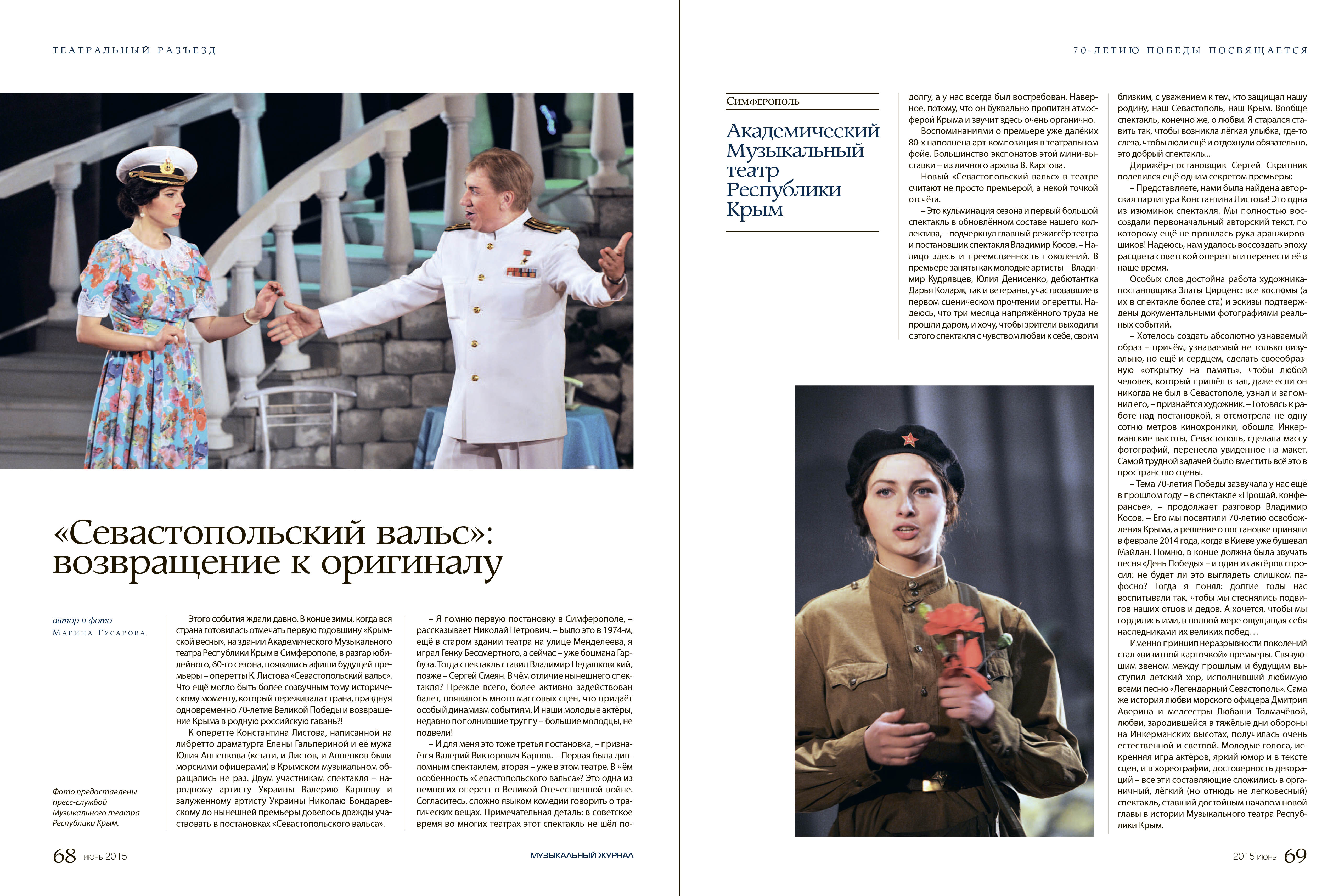 Особо важным событием для нашего театра стала публикация в ведущем журнале Российской Федерации «Музыкальный журнал» — современное глянцевое иллюстрированное издание. Информационные приоритеты которого — регионы России и наиболее важные музыкальные события в них. Героями публикаций в журнале являются звёзды отечественной и мировой музыкальной культуры. В числе информационных партнёров издания – департаменты культуры крупнейших регионов России, ведущие музыкально-сценические и концертно-филармонические коллективы страны. Дорогие зрители и друзья театра предлагаем вам ознакомиться с опубликованными материалами.