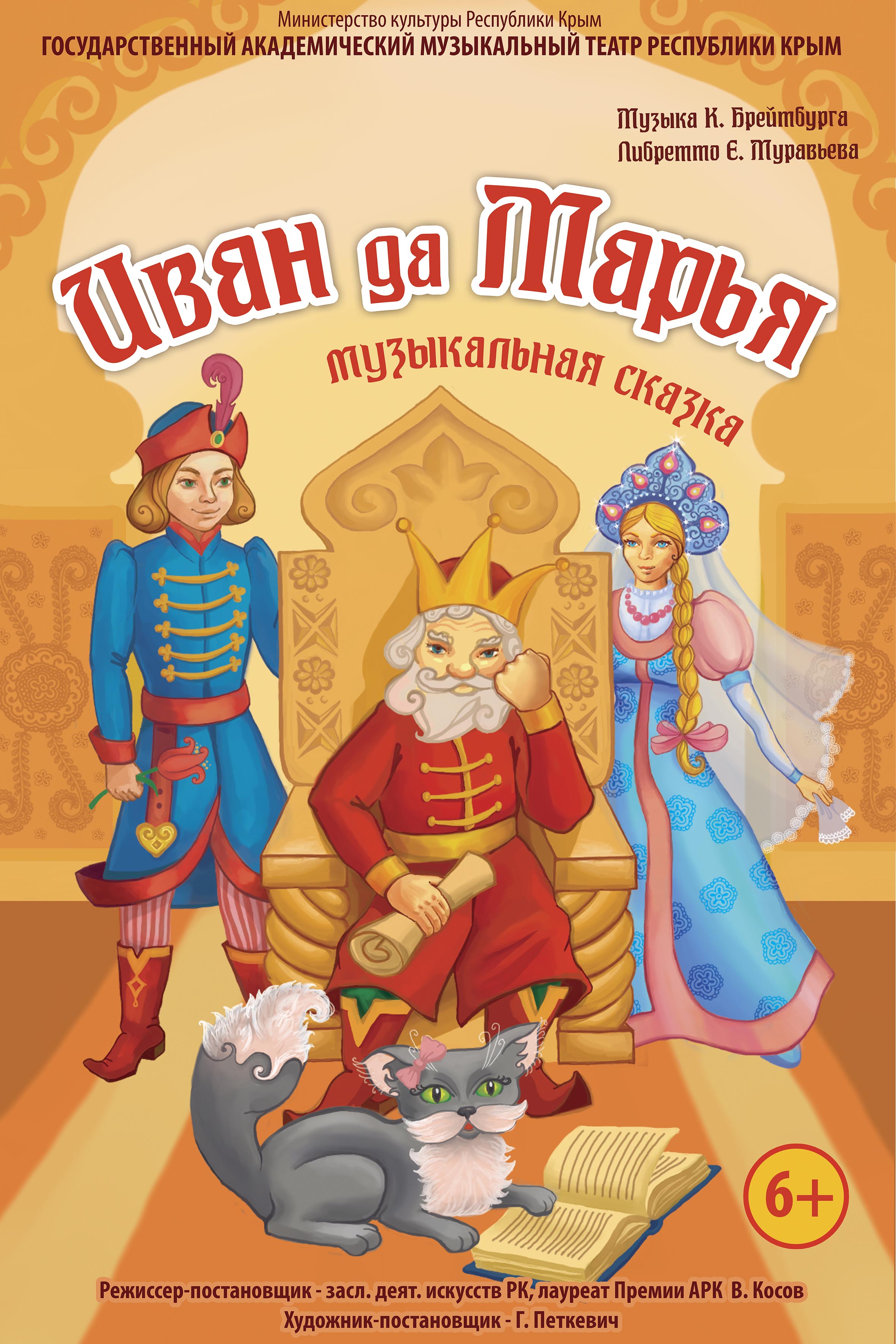 Музыкальная сказка «Иван да Марья» перенесёт юных зрителей в царство-государство, в котором совсем пустая казна. Чтобы поправить положение дел царь решает женить своего единственного сына — Ивана Царевича на богатой невесте. Этим воспользуются традиционные злодеи: Баба-Яга, Кикимора и Соловей-Разбойник. Они попытаются обмануть Царя и выдать Кикимору за Ивана. Но верная Марья, мудрая Киса-Анфиса — внучка учёного Кота и удалые богатыри нарушат все их коварные планы.