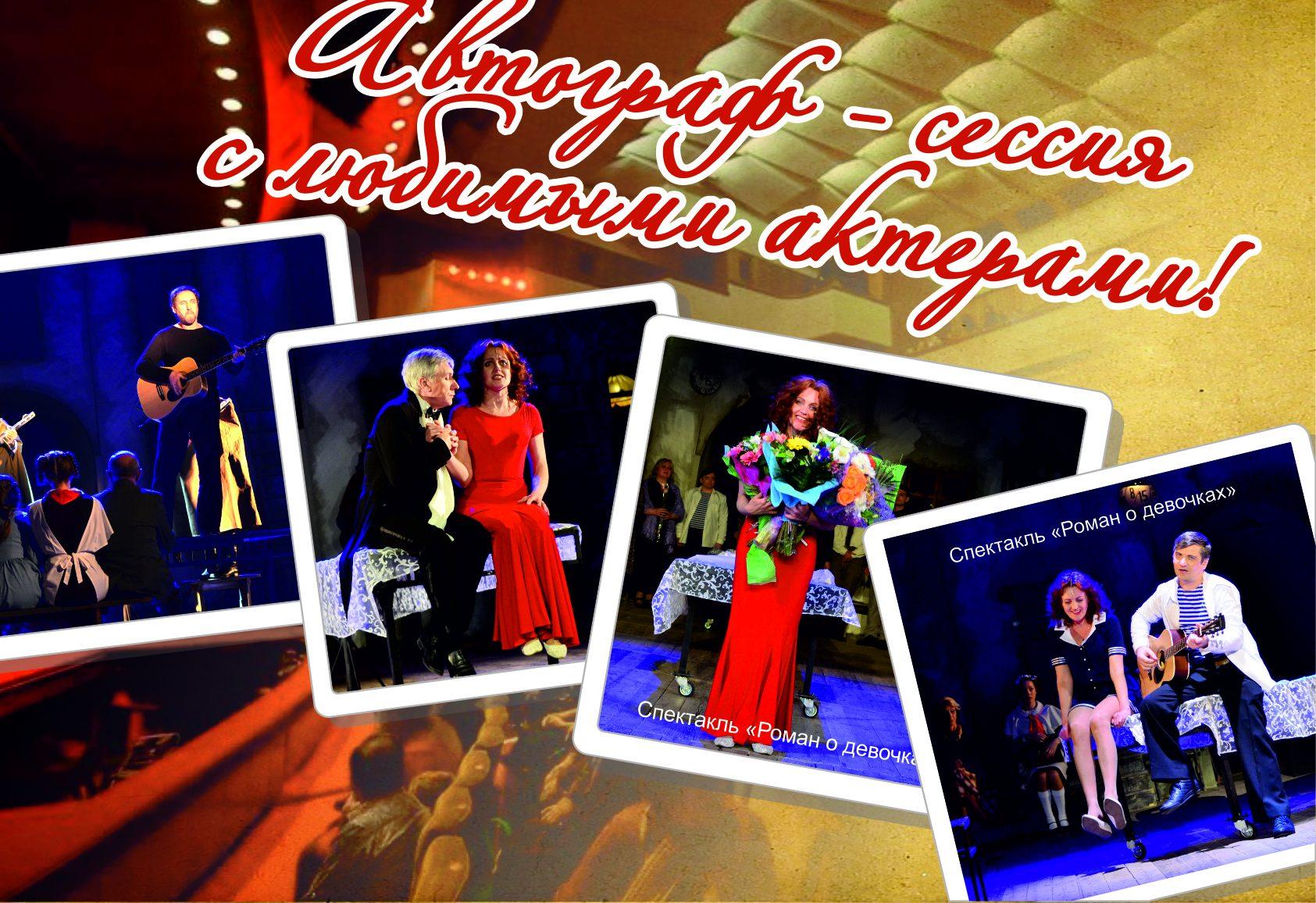 После спектакля на сцене пройдет «Автограф-сессия» — специальная акция, запланированная театром к закрытию театрального сезона. Зрители смогут получить автограф исполнительницы главной роли, заслуженной артистки Крыма Ольги Котляренко, которая играет Тамару Полуэктову. Также автографы будут раздавать партнеры Ольги Борисовны по спектаклю — народный артист Украины Валерий Карпов (Питер Онигман), заслуженный артист Крыма Валерий Лукьянов (Александр Кулешов) и Алексей Кареев (Николай Святенко). Автографы будут раздаваться на фирменных карточках театра, запечатлевших сцены из спектакля «Роман о девочках».