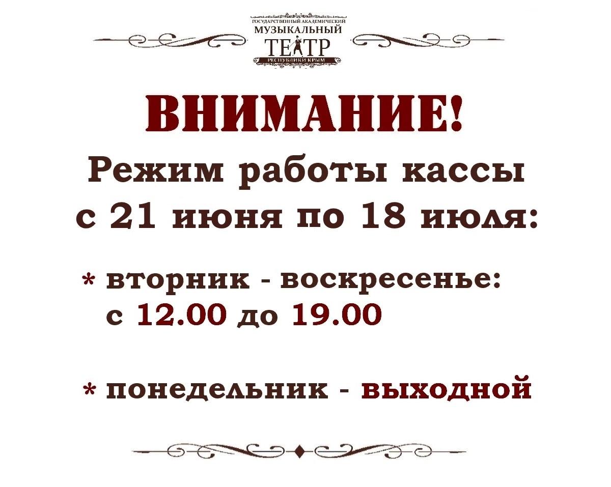Обращаем ваше внимание на временное изменение в режиме работы кассы музыкального театра.